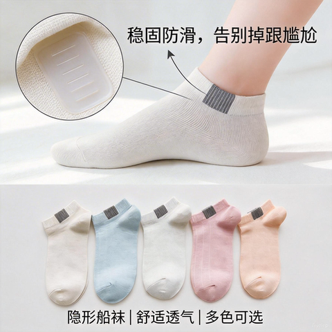 【透气吸汗】女士船袜隐形百搭舒适防臭不掉跟糖果色中筒袜子