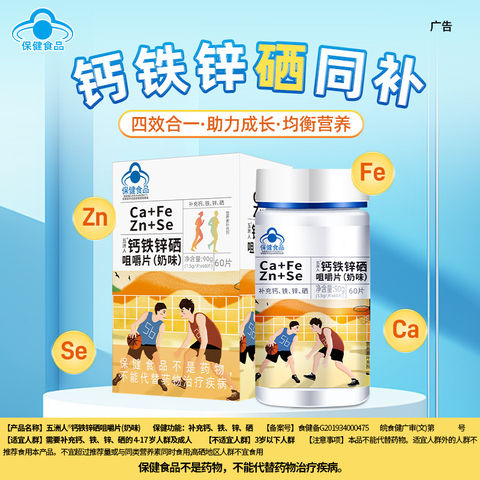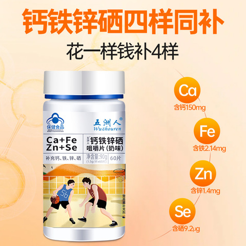 科学配比钙铁锌硒四重营养,中老年、女性、青少年全人群适用,咀嚼片设计吸收更佳!