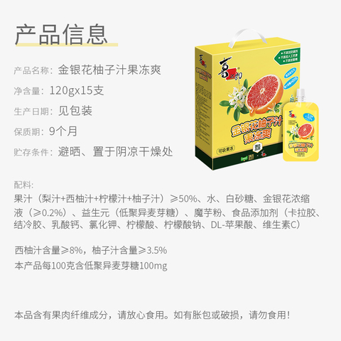 【原价49.9-官方立减18-2圆券-88VIP95折1.5-淘金币2.48-2.99淘金币=22.93,叠加200减25消费券】喜之郎金银花柚子汁果冻爽15支,添加益生元,解腻清爽。超值囤货!