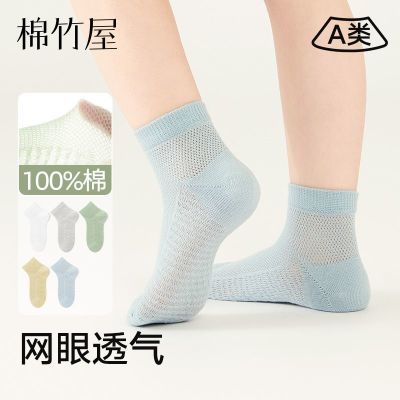 儿童袜子男童春夏薄款纯棉a类防臭吸汗夏天网眼透气学生男孩短袜