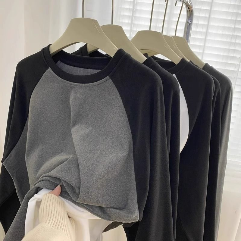 65%棉拼接设计感圆领卫衣男女秋冬季美式宽松时尚百搭上衣