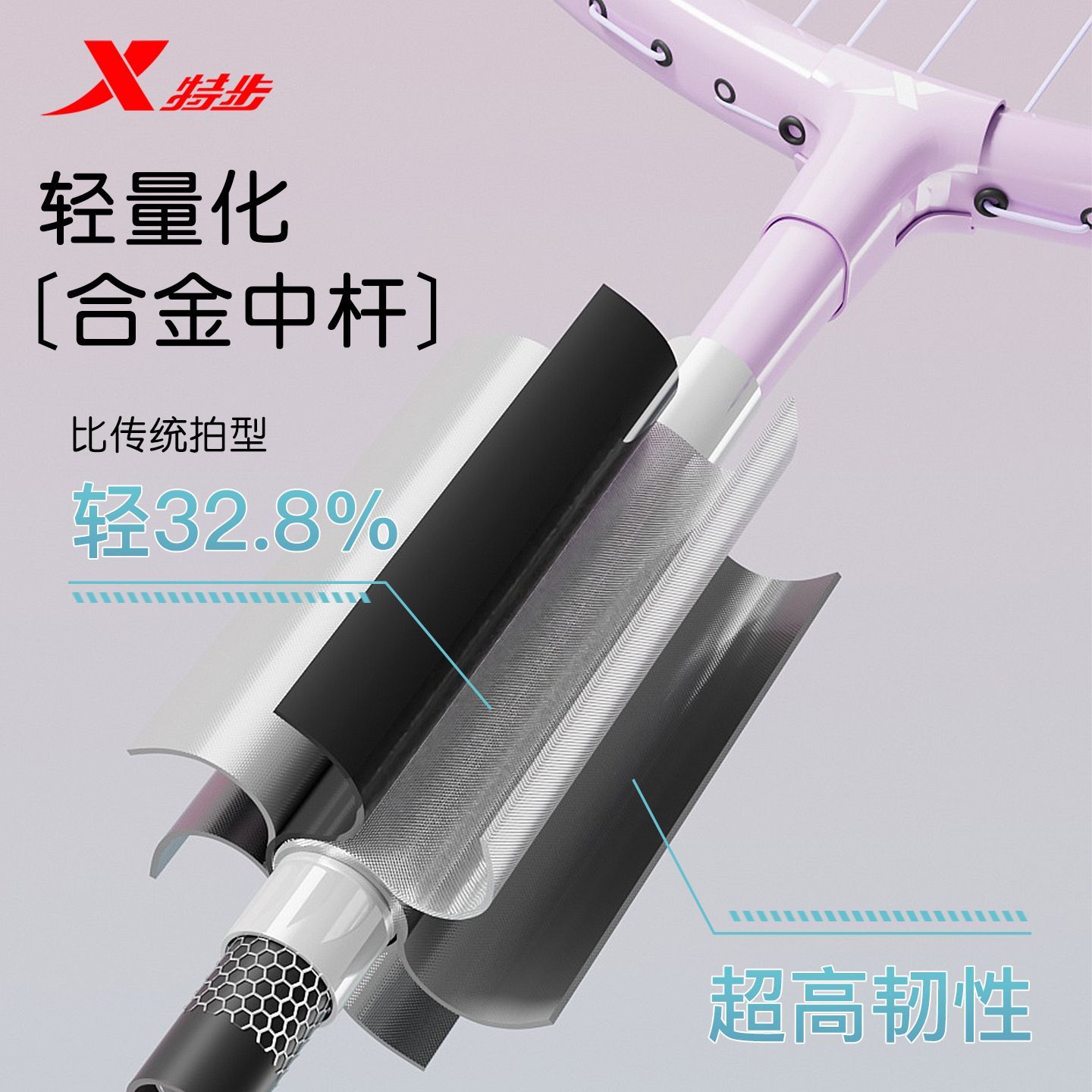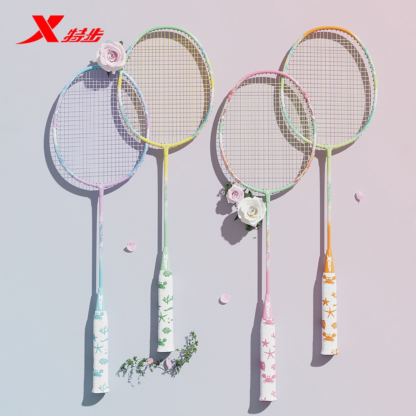特步羽毛球拍铝合金超轻耐打学生新手入门高弹力大甜区双拍套装