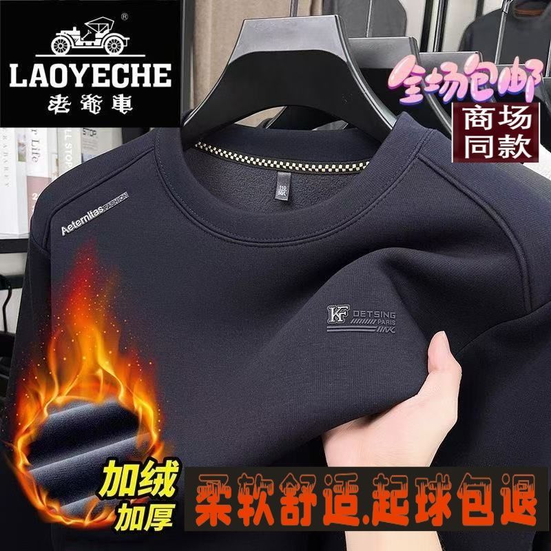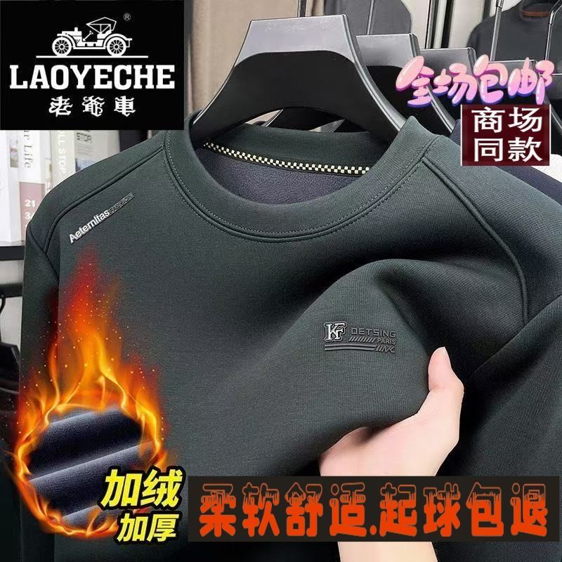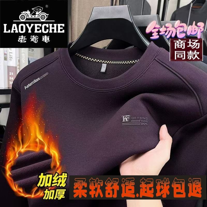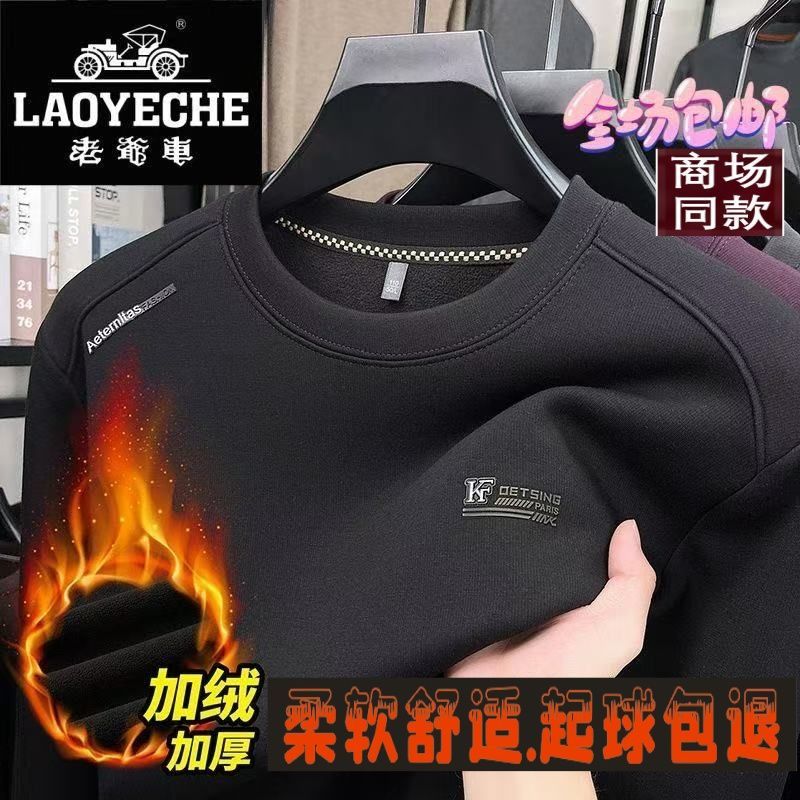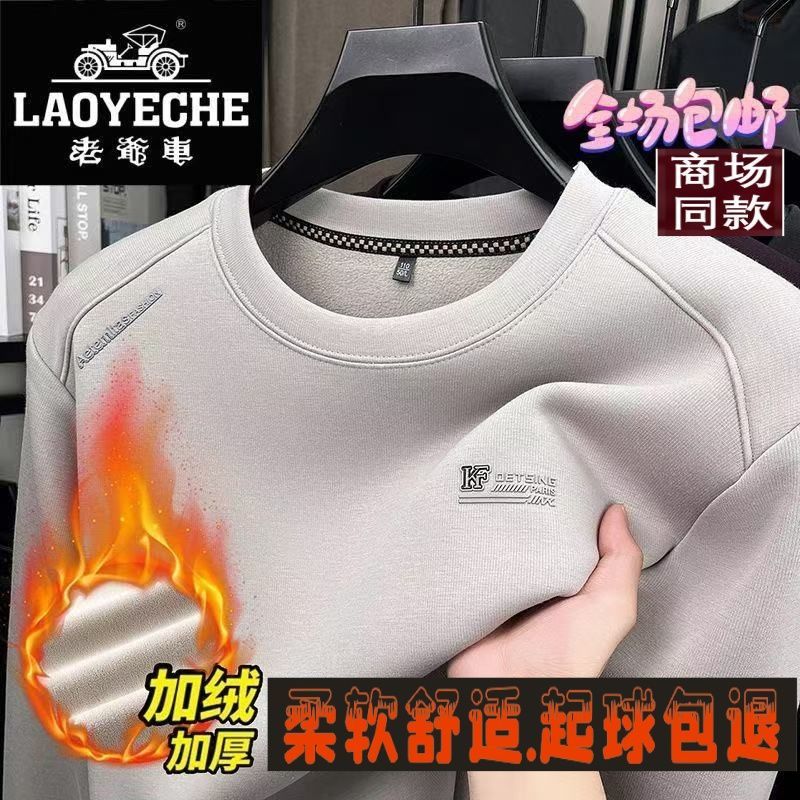 老爷车冬季爆款加厚醋酯纤维圆领长袖男士上衣休闲宽松针织打底