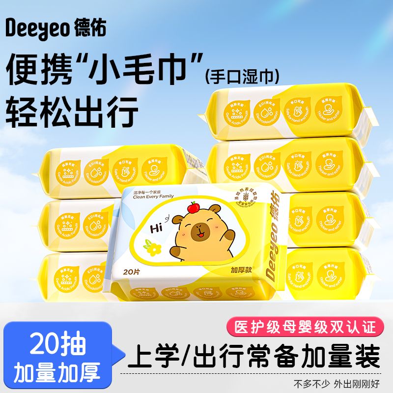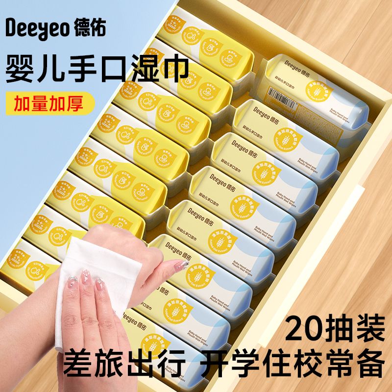 德佑婴儿湿巾独立小包装新生儿手口专用湿纸巾20抽出差旅行随身装