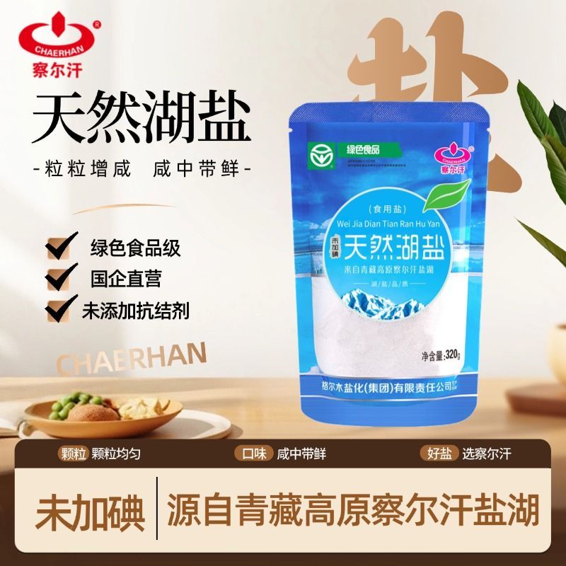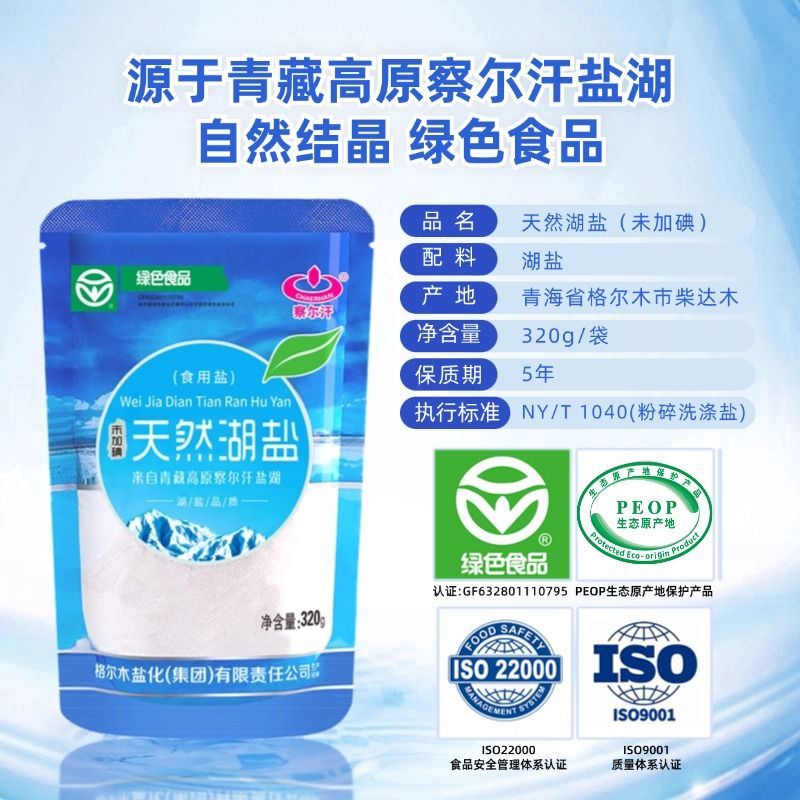 青海察尔汗天然湖盐320g未加碘无抗结剂家用绿色食品级食用盐