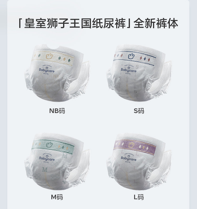 Babycare 【加量装】皇室狮子王国新生儿弱酸纸尿裤NB-XL 【售价】:¥207 下单链接: